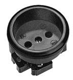 Prise femelle à encastrer sans contact de protection, socle avec oreilles de fixation.