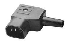 Socle connecteur 70°, 10 A, avec contact de protection et gaine anticoque, câble sortie gauche.