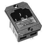 Socle connecteur 155°, 10 A, avec contact de protection, en option raccord à vis ou raccord enfichable 4,8 et 6,3 mm, avec porte-fusible pour faible intensité ø 5 x 20 mm, emplacement intégré pour fusible de réserve, bride longitudinale, écart entre les orifices de fixation 39 mm, fraisés.