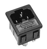 Socle connecteur 155°, 10 A, avec contact de protection, en option raccord à vis ou raccord enfichable 4,8 et 6,3 mm, avec porte-fusible à faible intensité ø 5 x 20 mm, emplacement intégré pour fusible de réserve, fixation à cran pour épaisseurs de parois de 1 / 1,5 / 2 mm, ajour de montage: 27,5 ± 0,1 mm x 31,5 ± 0,1 mm.