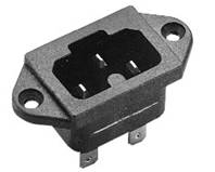 Socle connecteur 155°, 10 A, avec contact de protection, en option raccord à vis ou raccord enfichable 4,8 et 6,3 mm, bride longitudinale, écart entre les orifices de fixation 40 mm, fraisés.