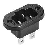 Socle connecteur 155°, 10 A, avec contact de protection, en option raccord à vis ou raccord enfichable 4,8 et 6,3 mm, bride longitudinale, écart entre les orifices de fixation 34 mm, fraisés, forme ovale.